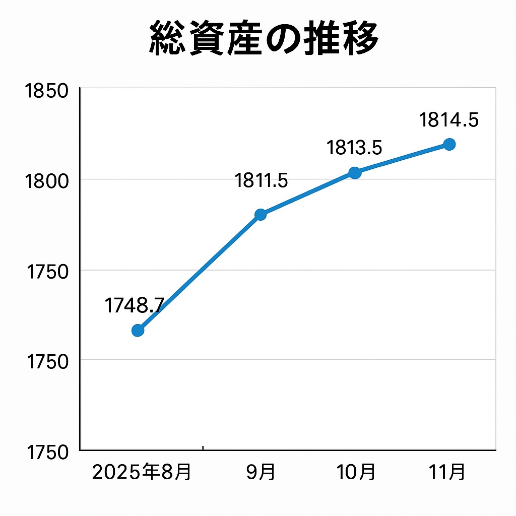 運用資産の上昇がうまくカバーして 総資産は前月比+1万円ほどで微増 という結果でした。